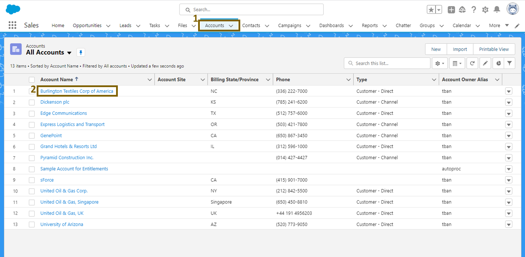 적용이 잘 됐는지 'Sales' 어플리케이션 - Account'로 가서 체크해 보겠습니다.