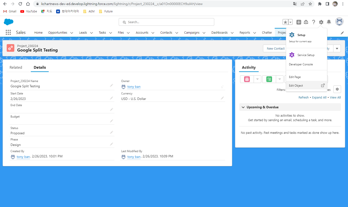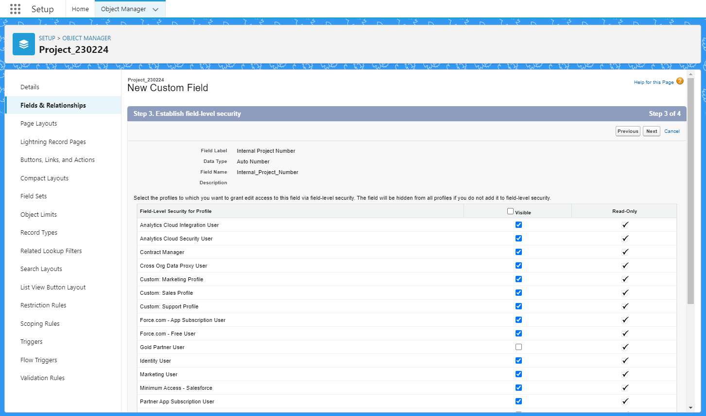 | [세일즈포스 독학] 9. 페이지 레이아웃 수정, 픽리스트 필드 생성, 필드 종속성 테스트 (0) | 2023.02.24 |
