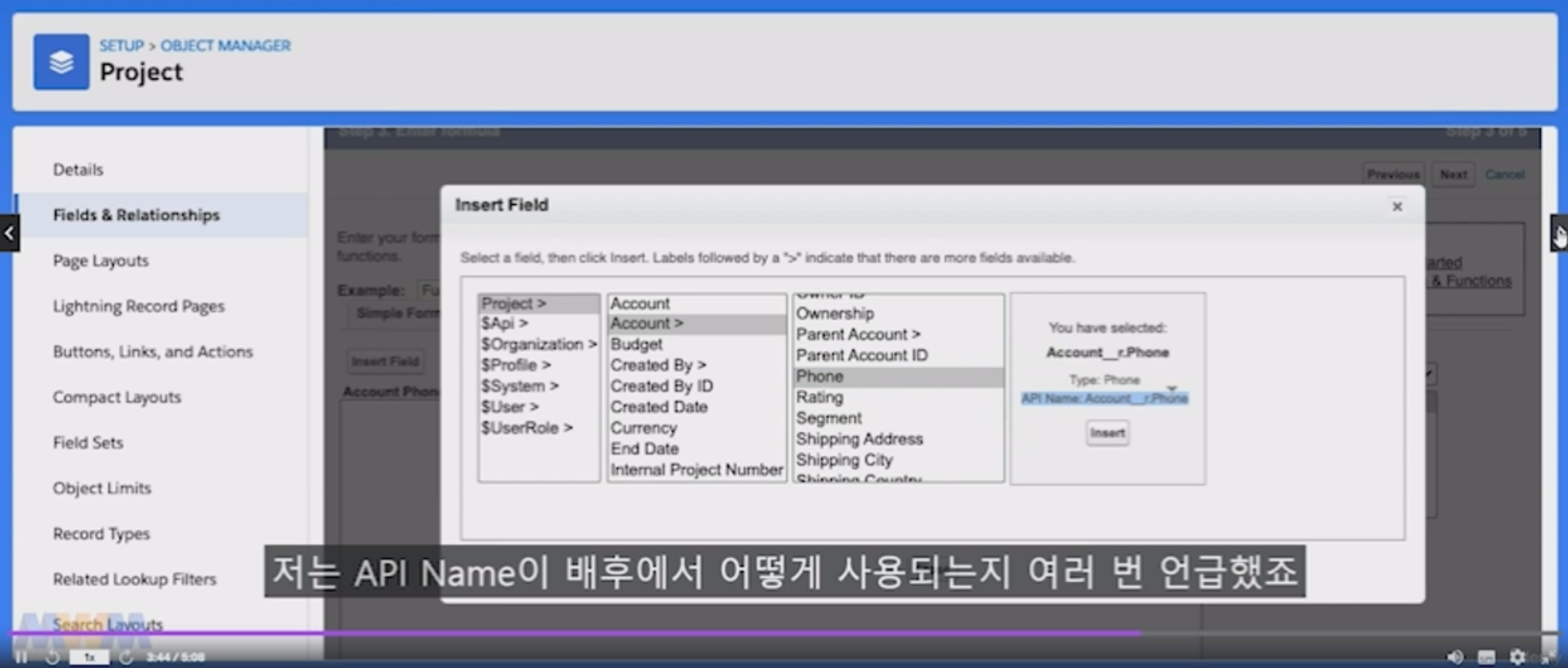 'Insert Field'를 클릭합니다.