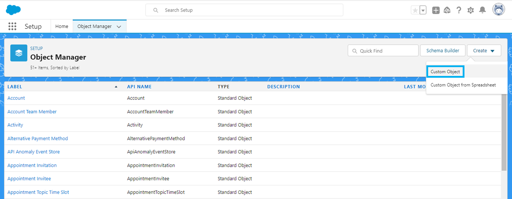 새로운 커스텀 필드가 있는 커스텀 객체 생성(custom object)