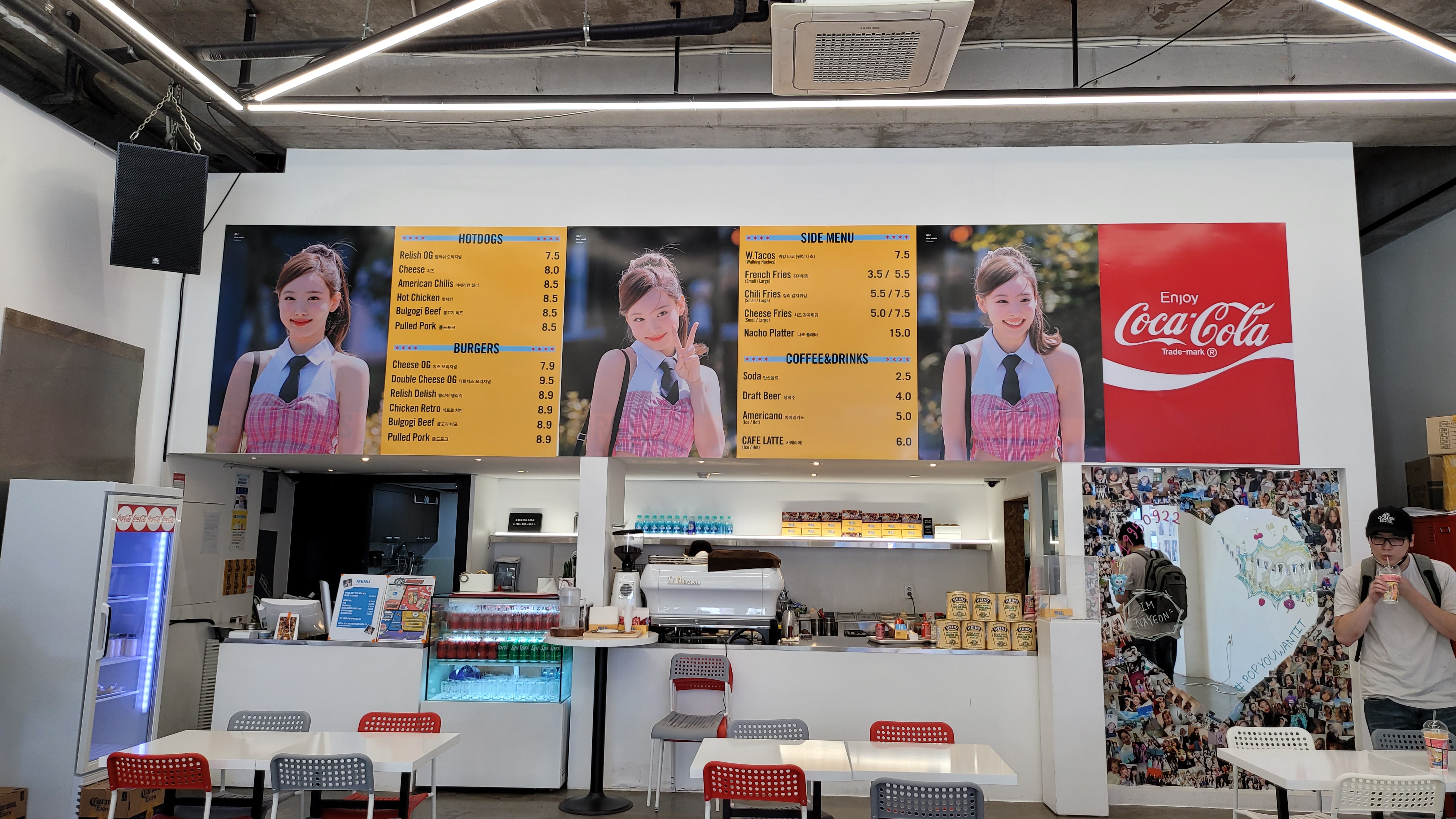 원래 여기가 연예인 팬클럽 카페 같은 곳이었는데 수제버거, 핫도그집으로 바꼈나봐요. 아직 군데군데 남아 있는 컨셉을 보면 사장님이 업종 변경을 하신 것 같기도 하고..암튼 대박 나시기 바랍니다.