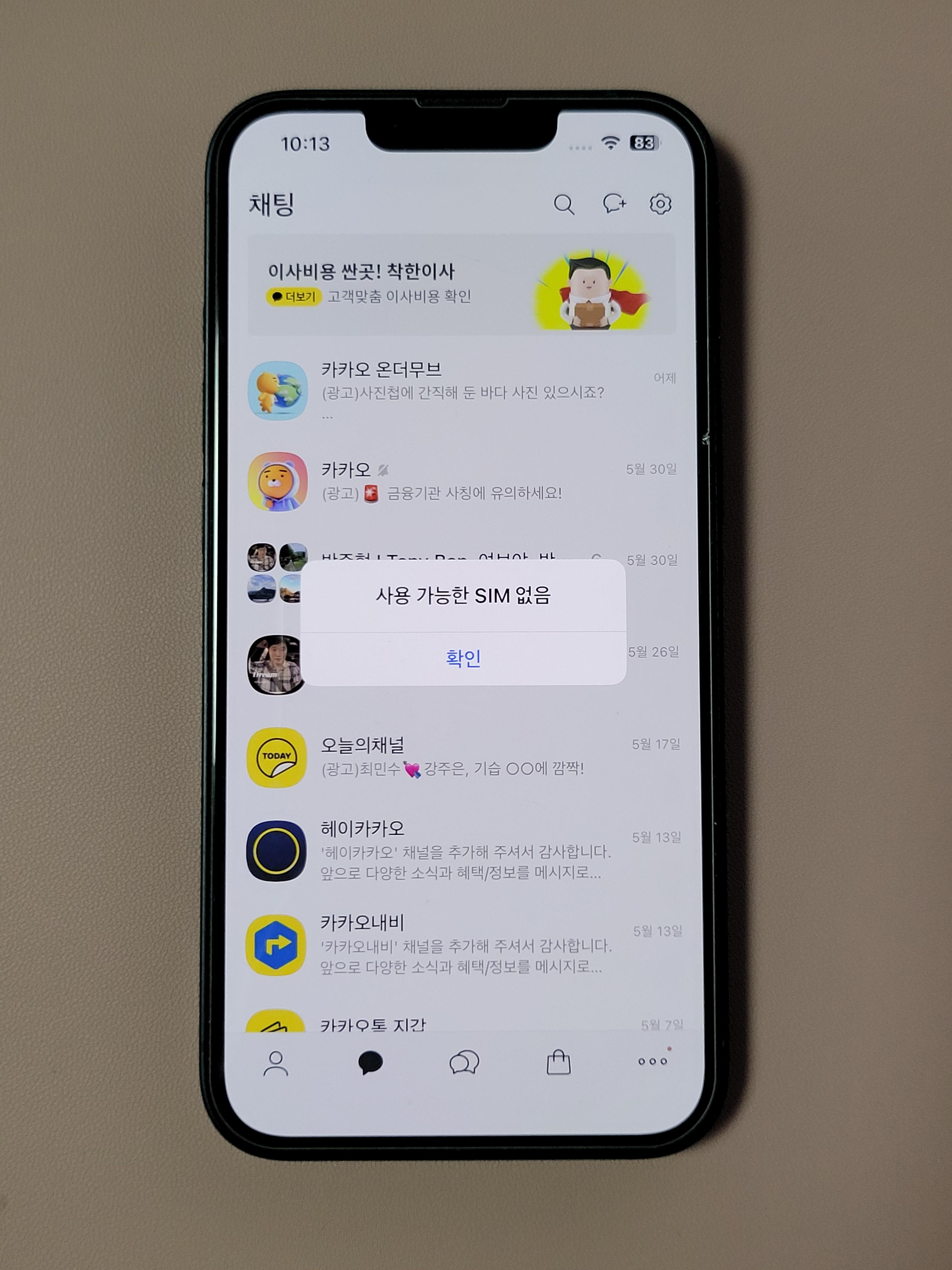 3. 기존 폰에 다시 유심칩을 꽂은 상태 : 다른 폰에서 내 카카오톡 인증을 받지 않는 한 기존 폰에 유심을 꽂으면 바로 사용 가능함