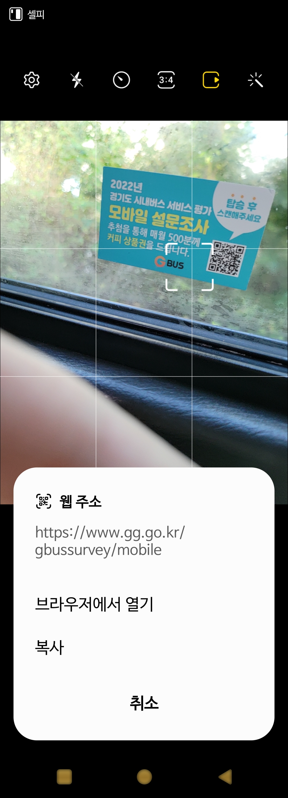 2. 카메라 피사체 부분에 QR코드를 놓는다.