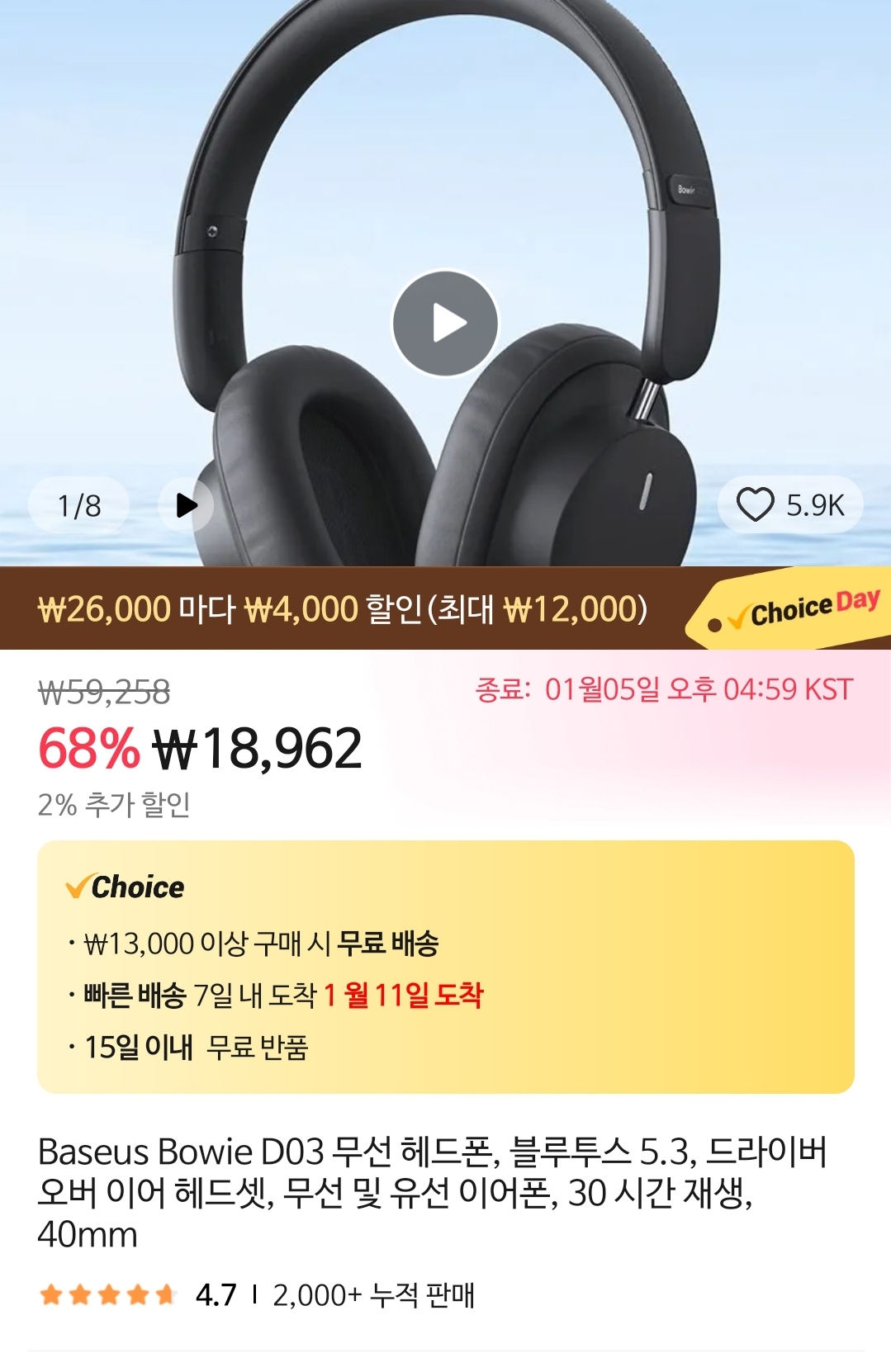 5일 전 알리에서 Bowie D03이라는 오버이어 헤드폰을 구매했습니다. 배송이 7일 걸린다고 했었는데, 이틀이나 빨리 도착했습니다! 해외직구가 5일 만에 배송, 참 좋아졌네요. 음질도 굉장히 좋습니다.