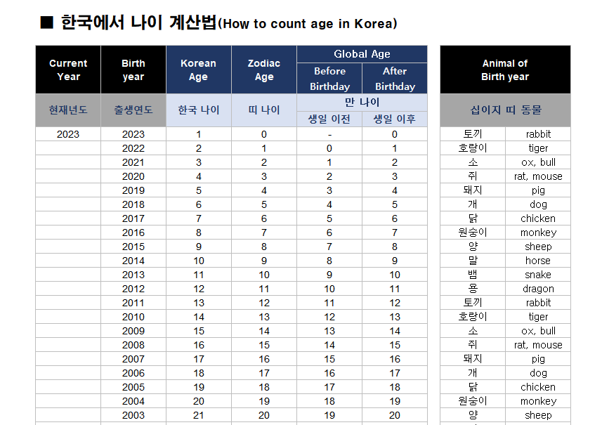연령별 세 가지 나이를 쉽게 알아볼 수 있도록 엑셀파일도 첨부했으니 참고 부탁드립니다.
