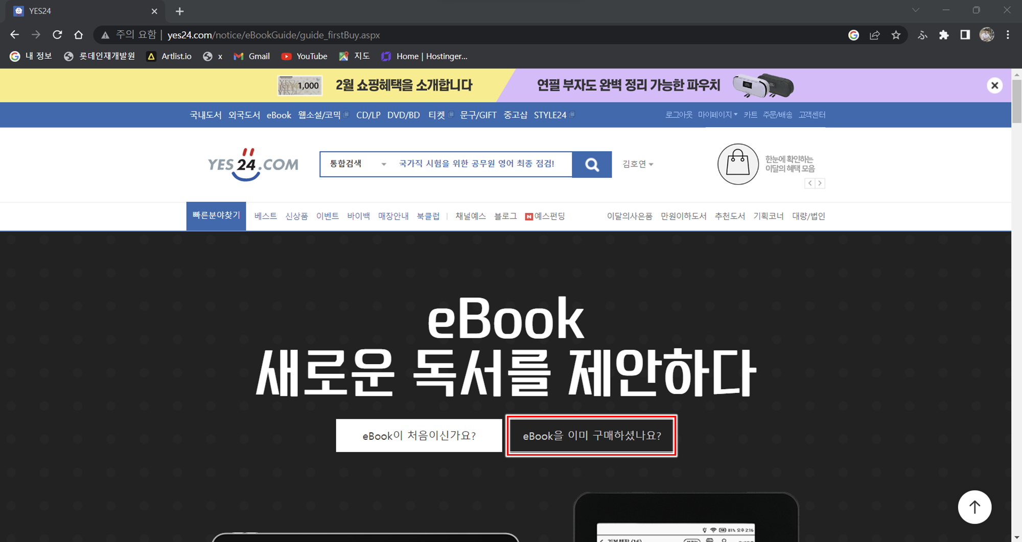 4. 'eBook'을 이미 구매하셨나요?'를 클릭합니다.