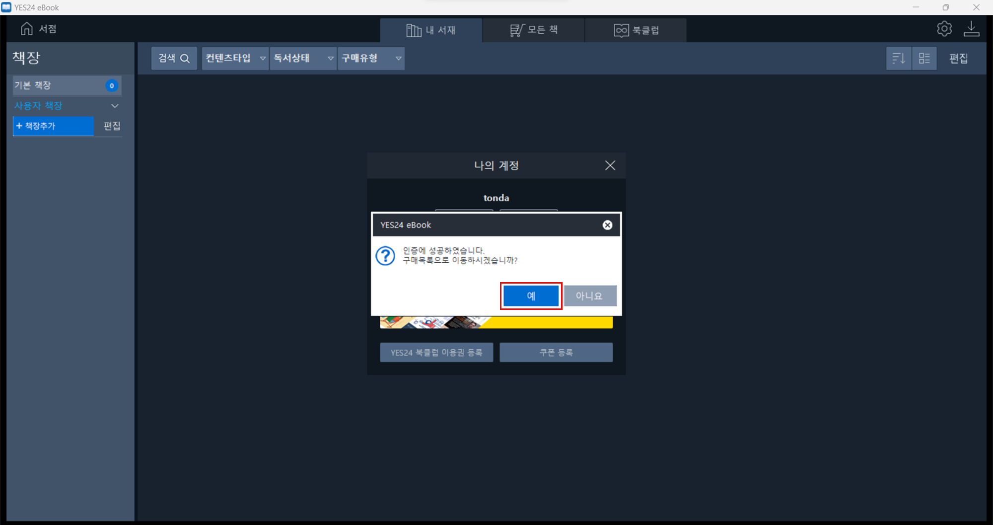 8. 예스24 이 북 뷰어를 열고 로그인해 주세요.