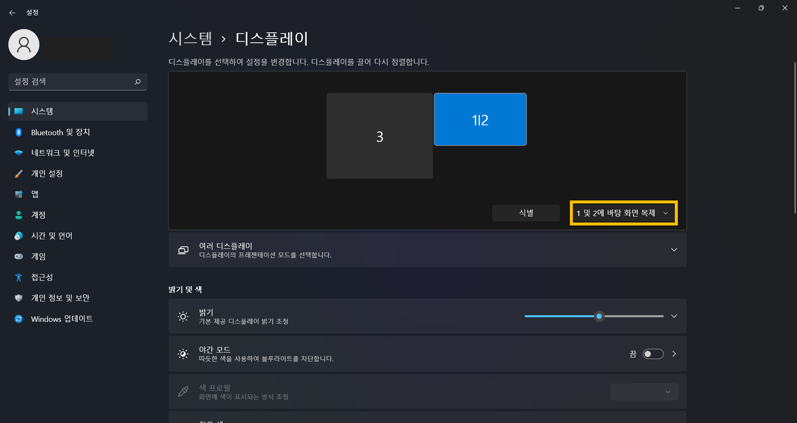▶ 1및 2에 바탕 화면 복제 : 1,2번 모니터끼리 화면 복제