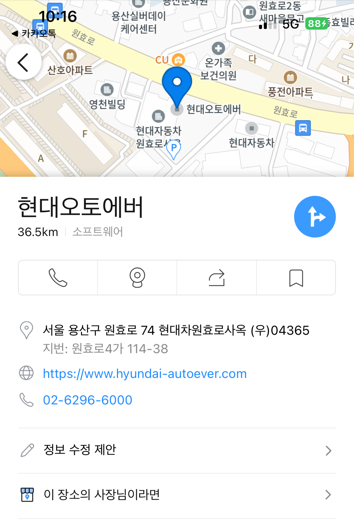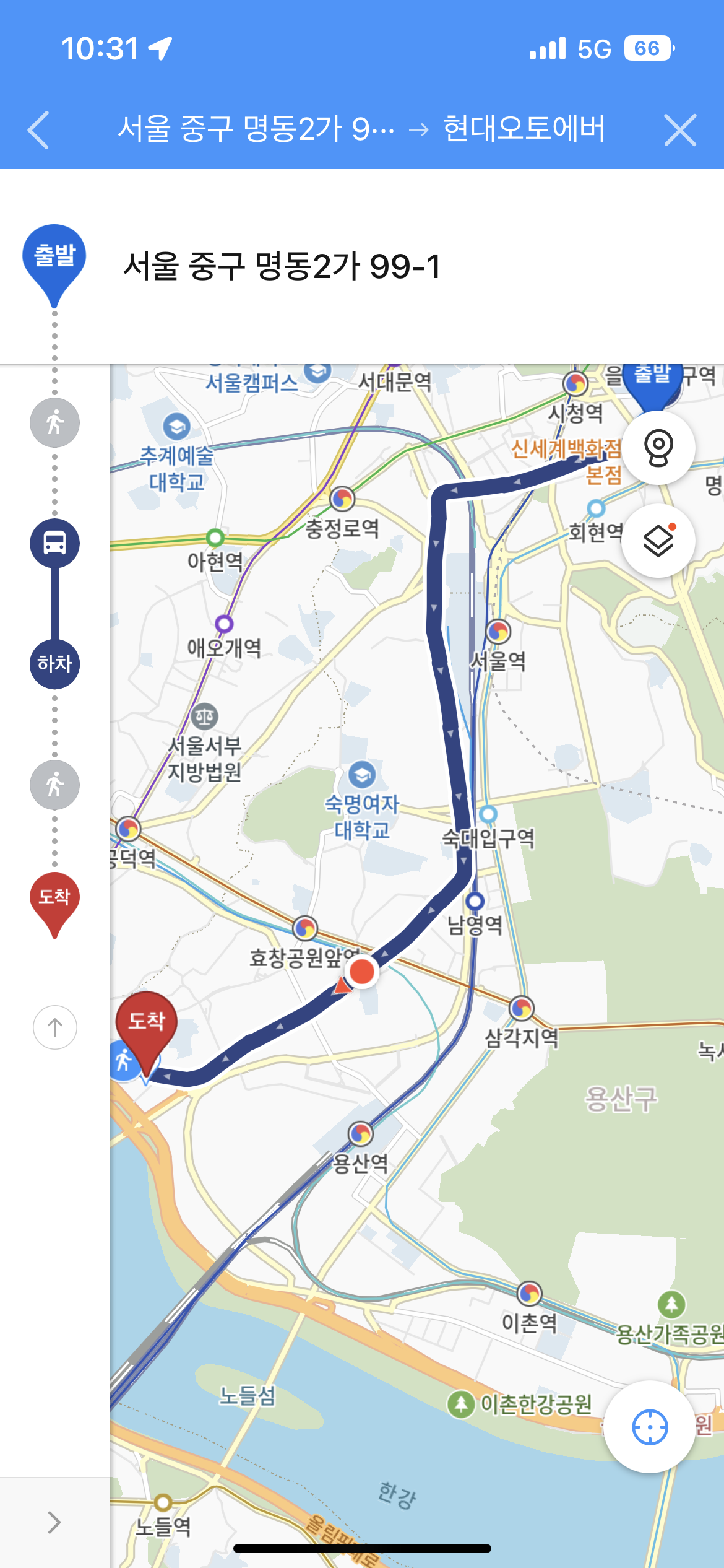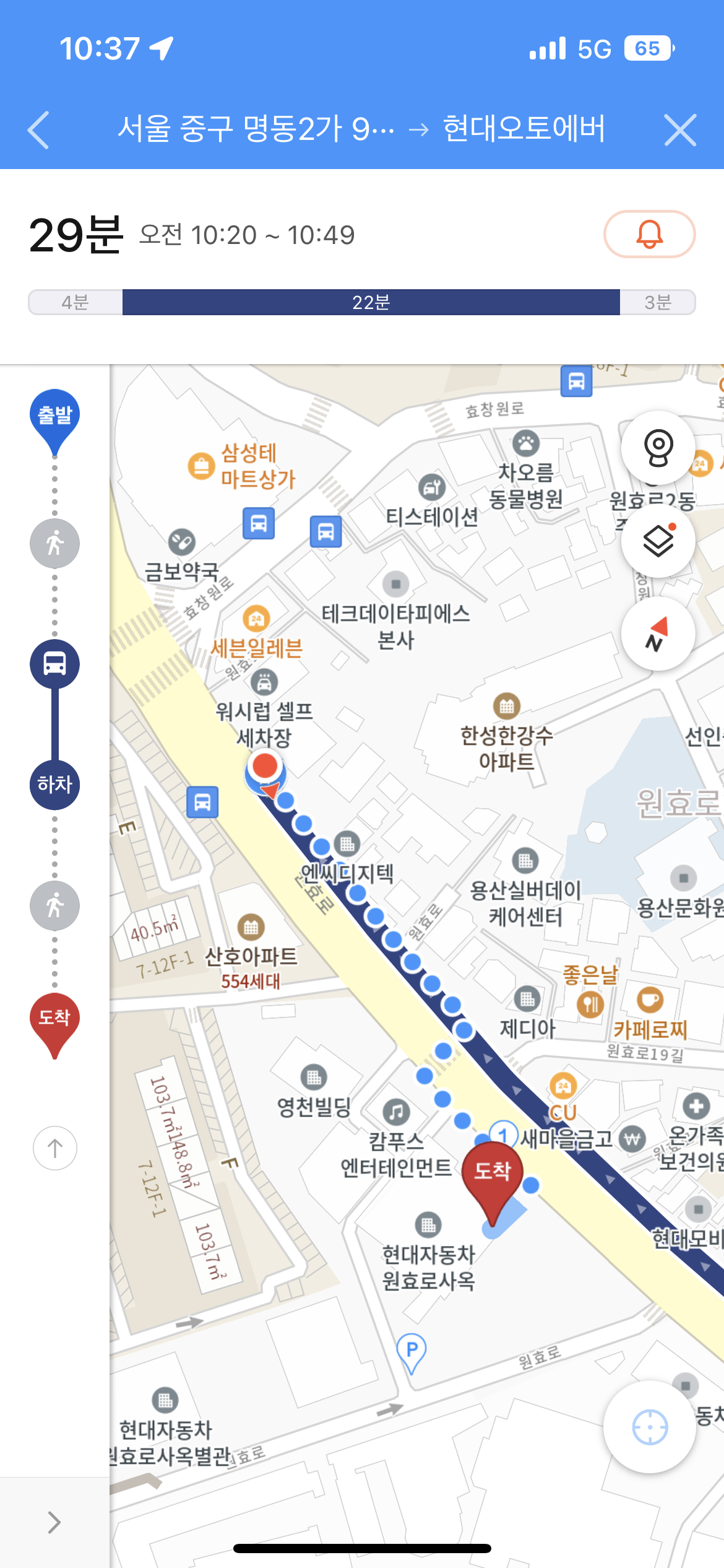 목적지인 현대오토에버 원효로 사옥까지 한번의 실수도 없이 곧장 찾아올 수 있었습니다.