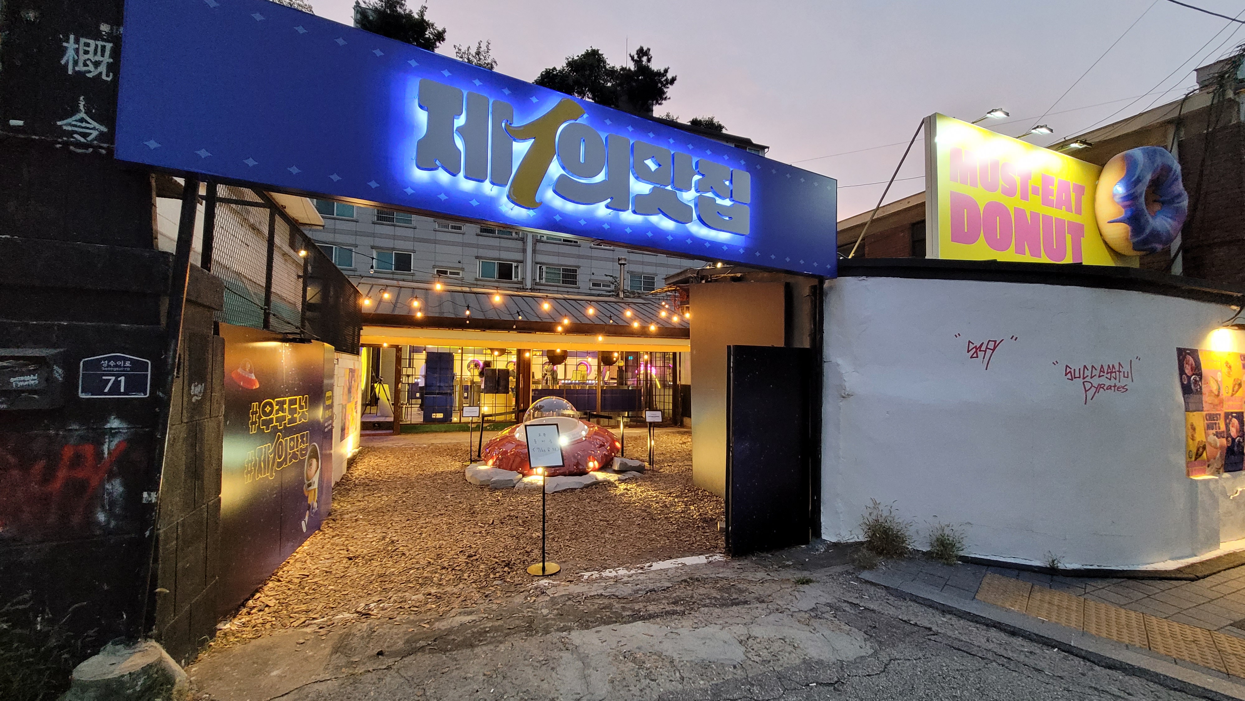 여긴 저희 본사 근처인데, CJ제일제당에서 9.23일부터 10.12일까지 #우주도넛 #제1의맛집 이라는 테마로 진행하는 팝업스토어입니다. 오늘 저녁에도 촬영팀이 잔뜩 와 있던데요. 저녁에 이 앞에서 전단지를 나눠주는데, 아저씨라 그런지 어제도 오늘도 저한텐 전단지를 안 주네요^^;;; 젋은 직원들 데리고 갈수도 있는데 ㅎㅎㅎ