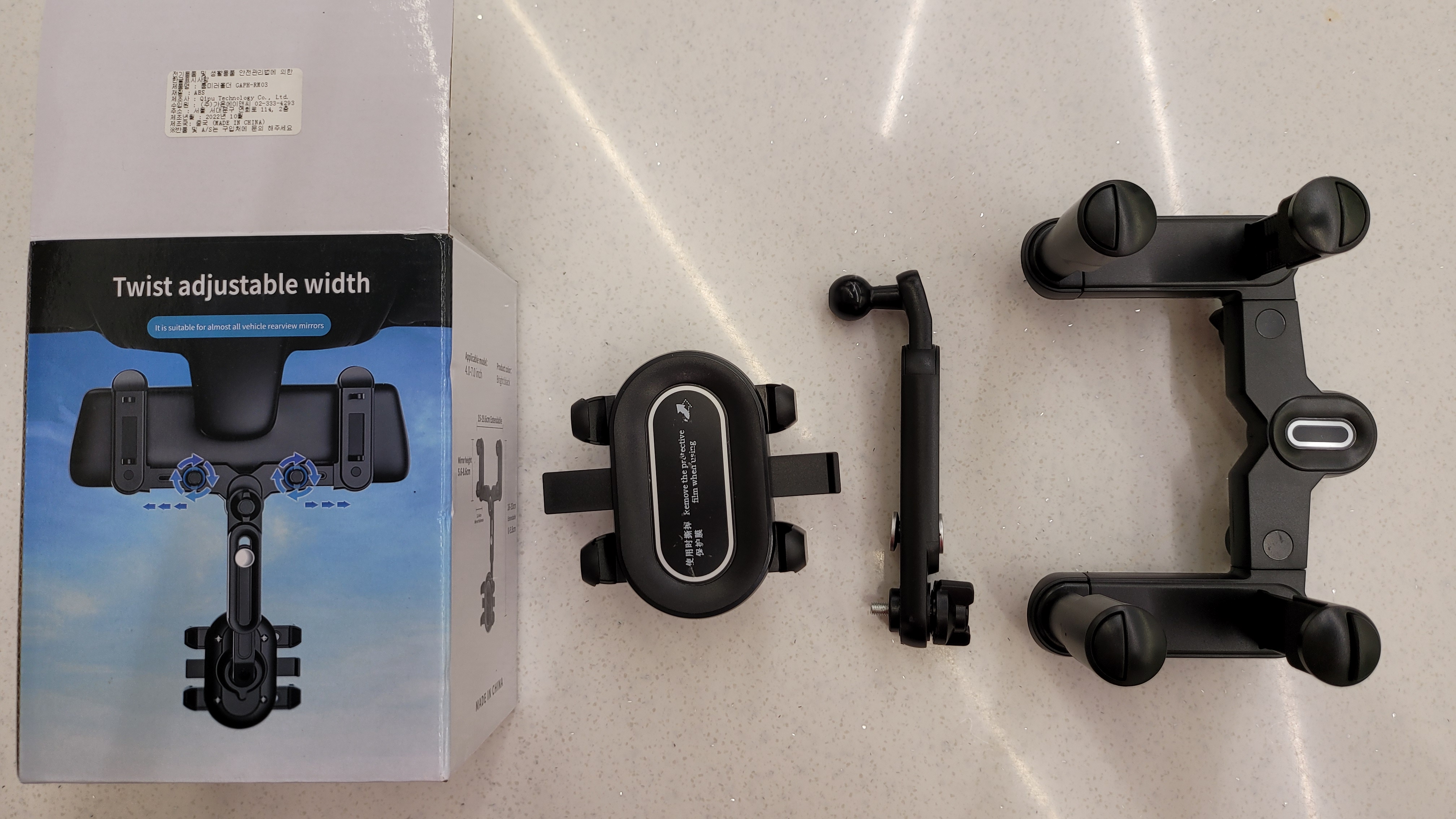 가온 확장형 룸미러 거치대는 중국산인데요. 위 사진은 박스에 인쇄된 이미지입니다.