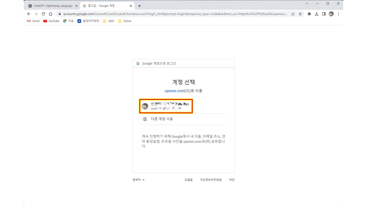 본인의 구글 아이디를 클릭합니다.