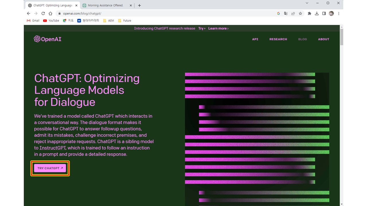 'TRY CHATGPT'를 클릭합니다.