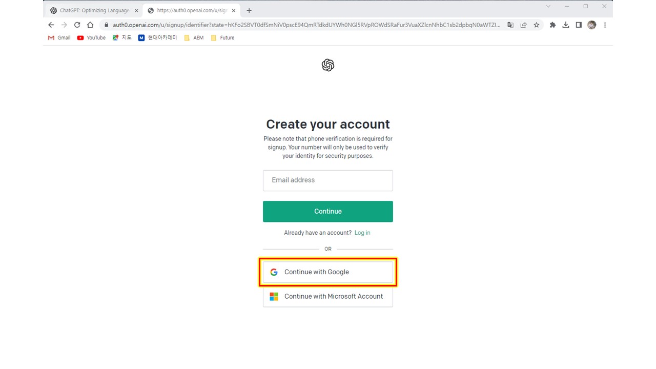 구글 계정으로 가입하겠습니다. 'Continue with Google'를 클릭합니다.