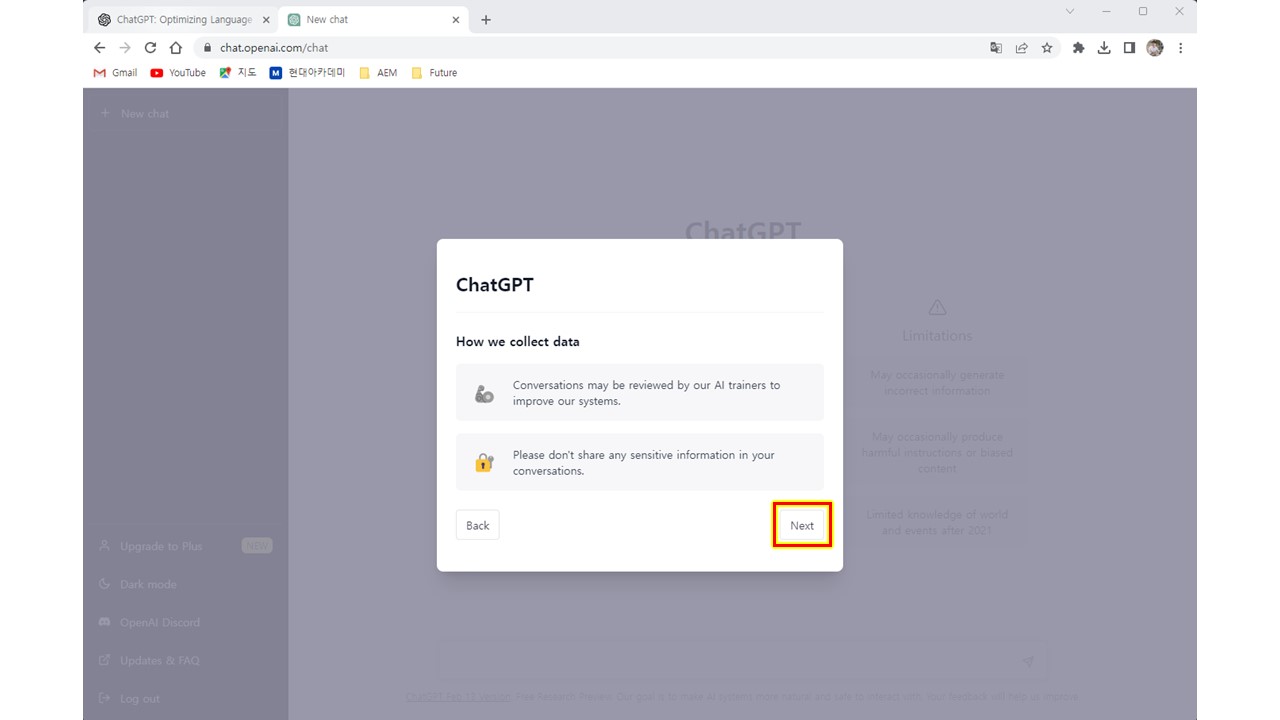 요즘 누구나 다 해본다는 챗지피티(chatGPT)를 사용해 봤습니다. 정말 놀랍습니다. 이 정도라니.... https://openai.com/blog/chatgpt/ ChatGPT: Optimizing Language Models for Dialogue We’ve trained a model called ChatGPT which i