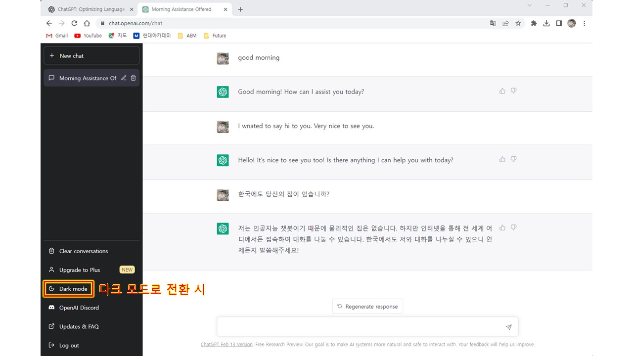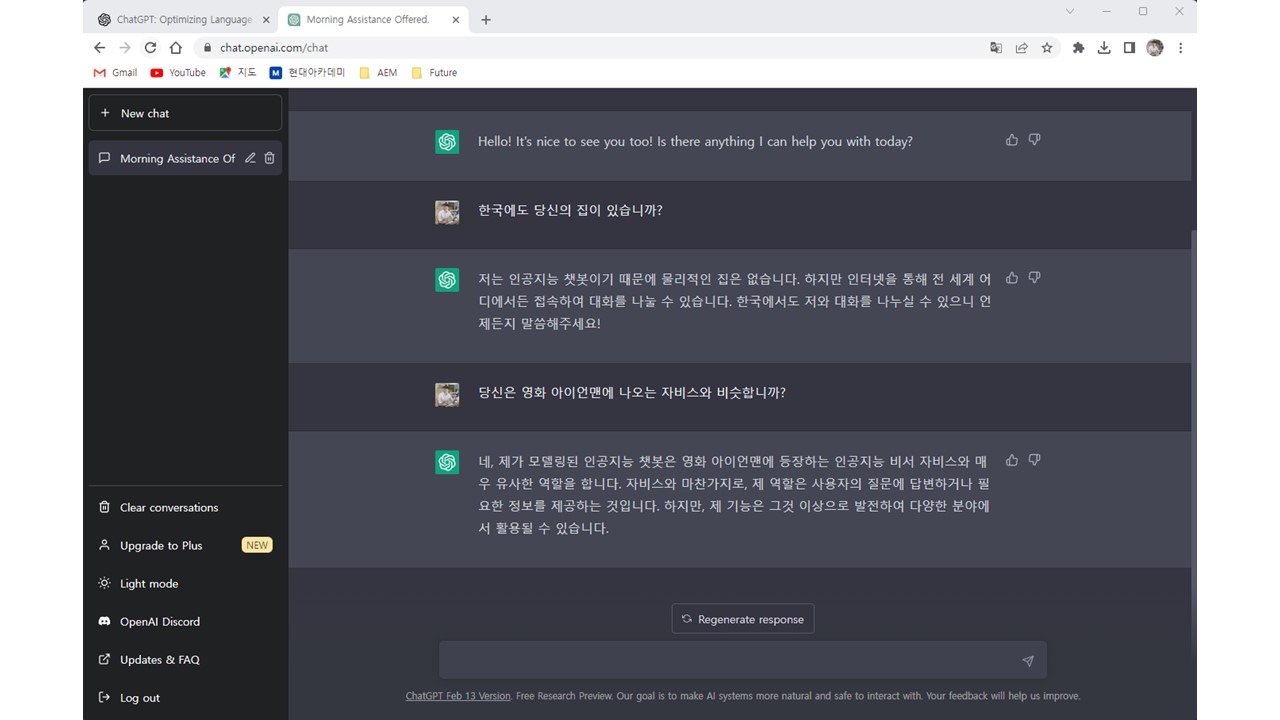 무료 버전인 저와 유료 버전인 이 직원의 챗지피티에게 동일한 질문을 남겼을 때,