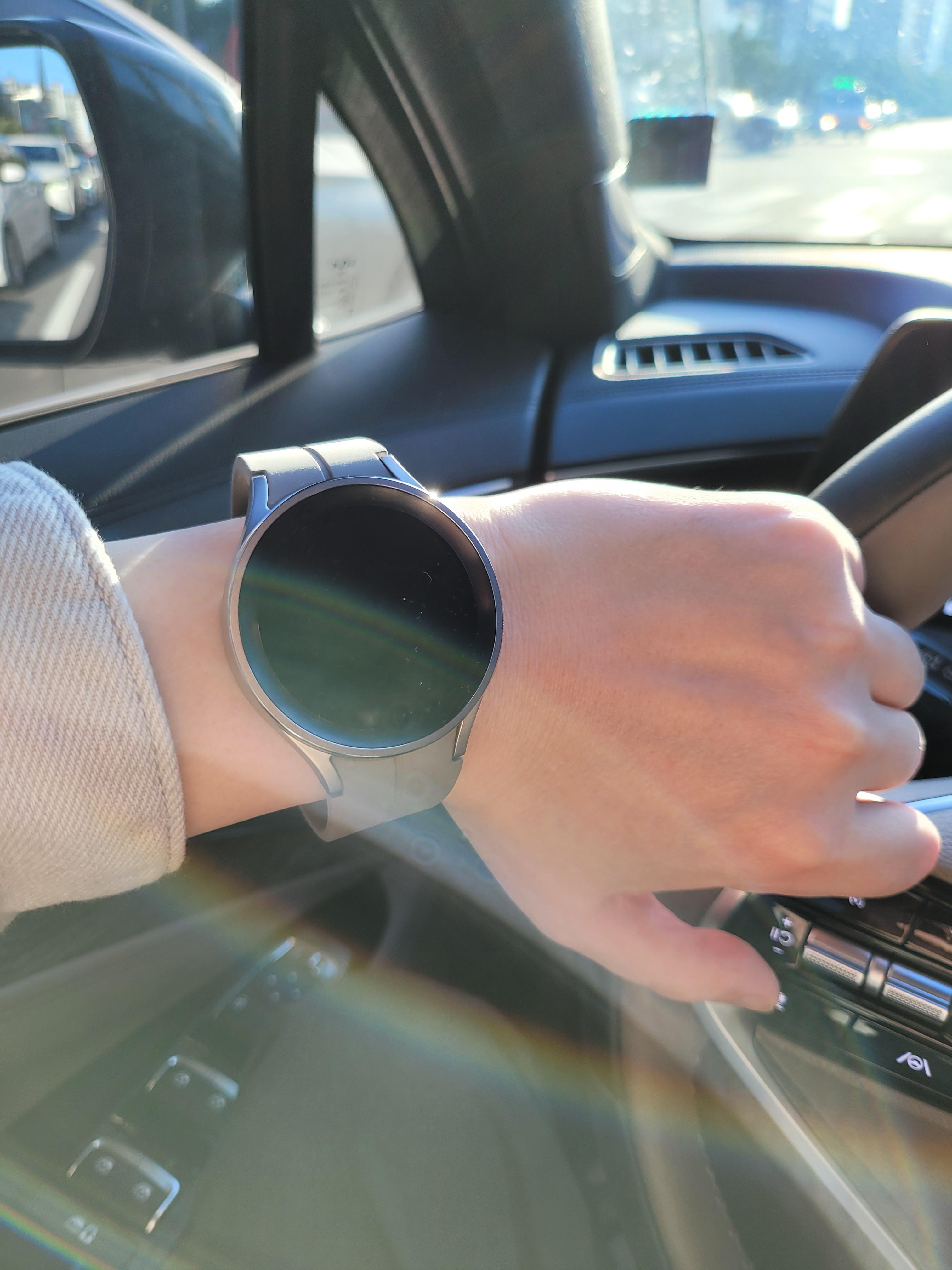 운전하며 신호 대기중에 찍은 워치입니다. 손목이 얇은 저 같은 남성도 무난하게 소화할 수 있습니다.