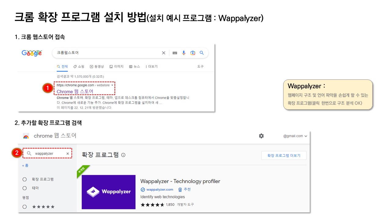 Wappalyzer 활용 통한 초간단! 웹페이지 구조 및 언어 파악이 가능한 구글 크롬 확장 프로그램 (0) | 2022.12.21 |