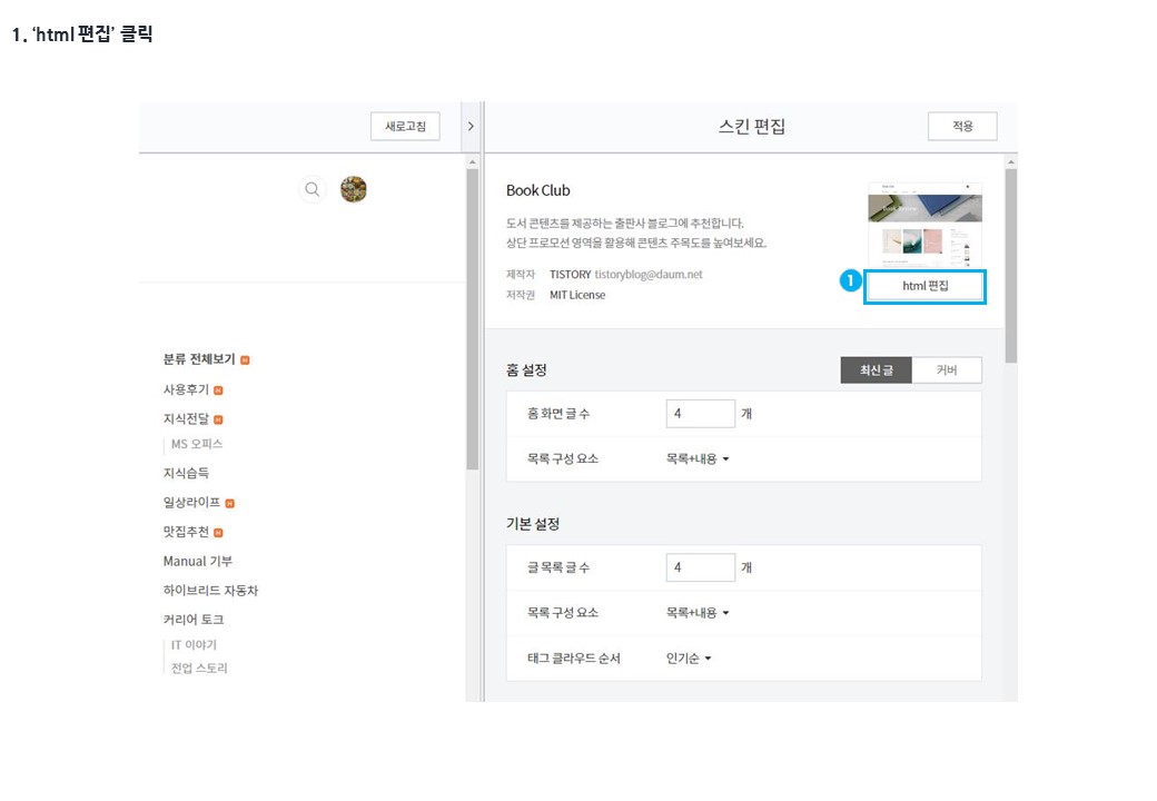 1. ‘html 편집’ 클릭