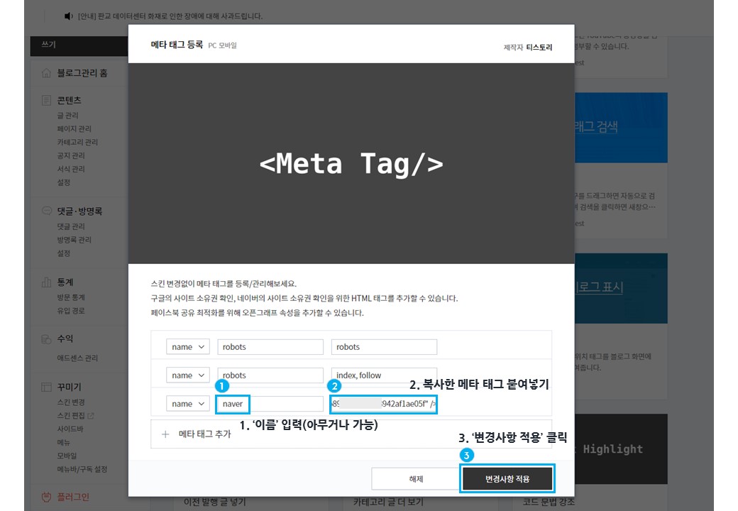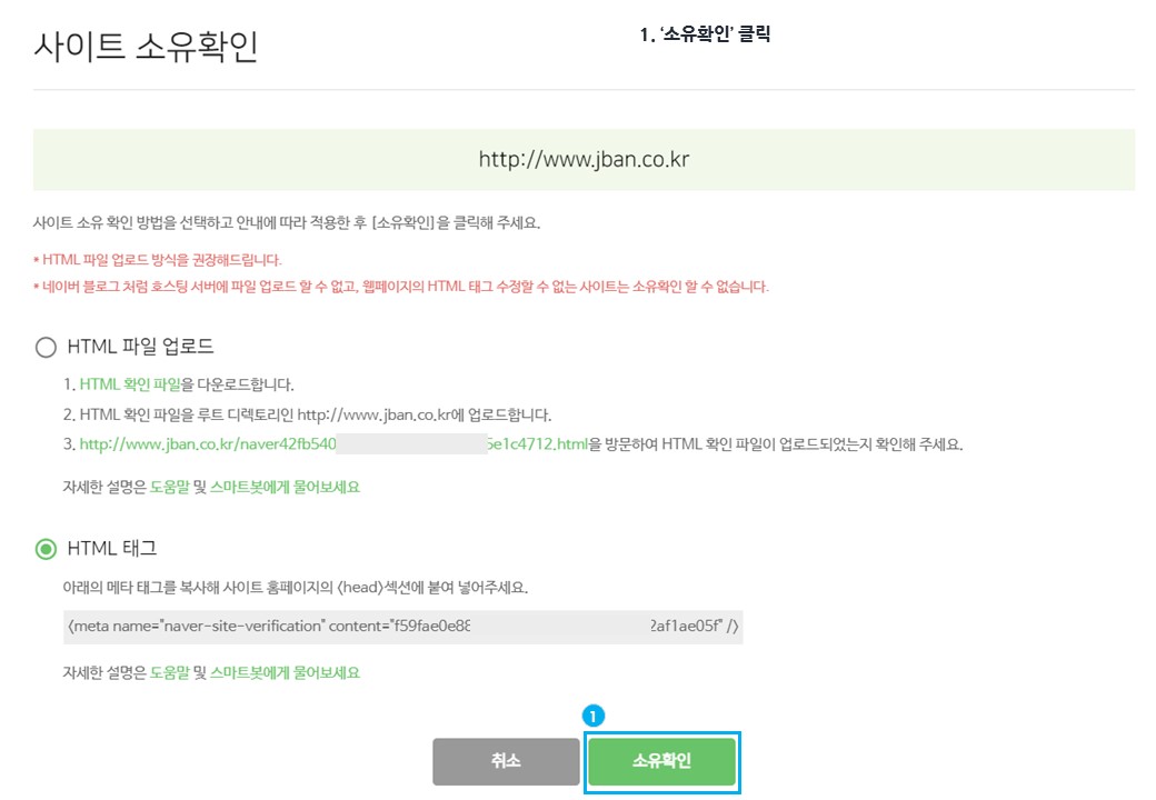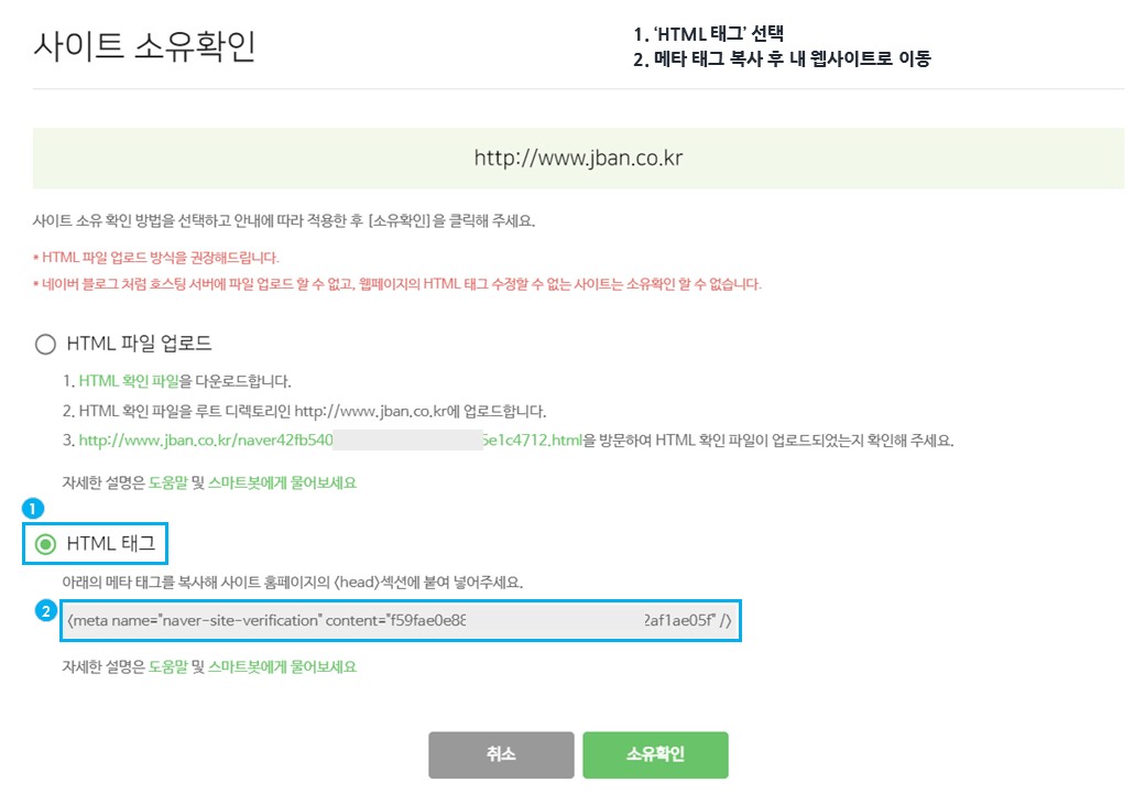 네이버 서치어드바이저 사이트 소유확인, 사이트 등록, 메타 태그 등록 매뉴얼