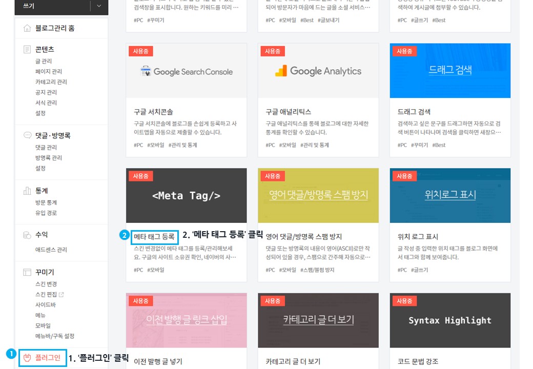 2. ‘메타 태그 등록’ 클릭