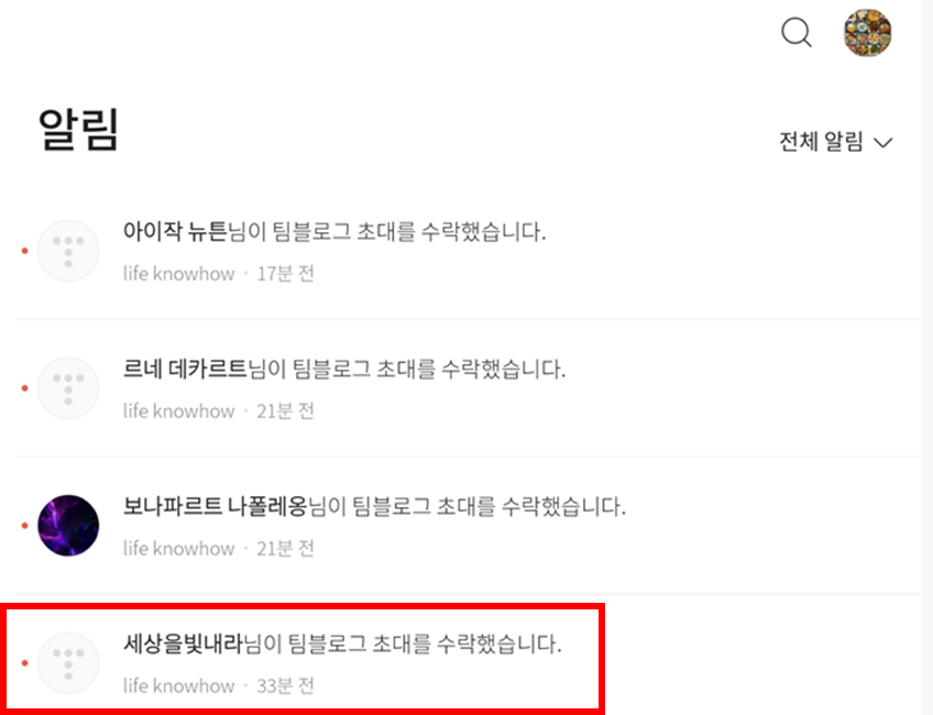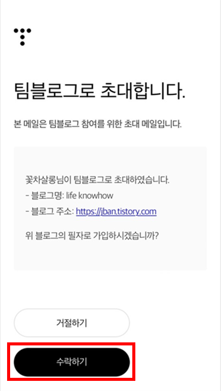 → 수락 즉시 티스토리 운영자에게 아래와 같은 알림이 발송됨