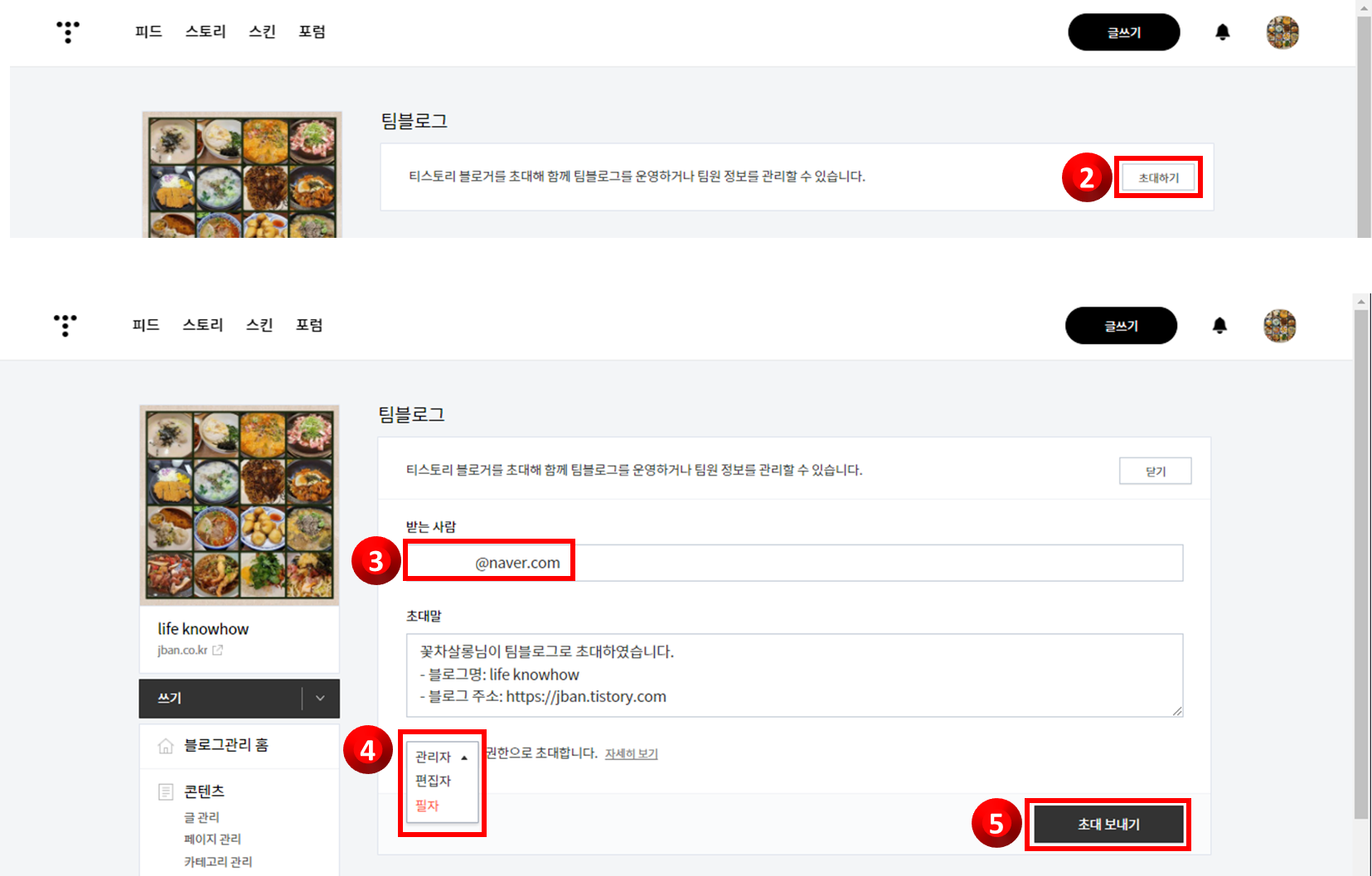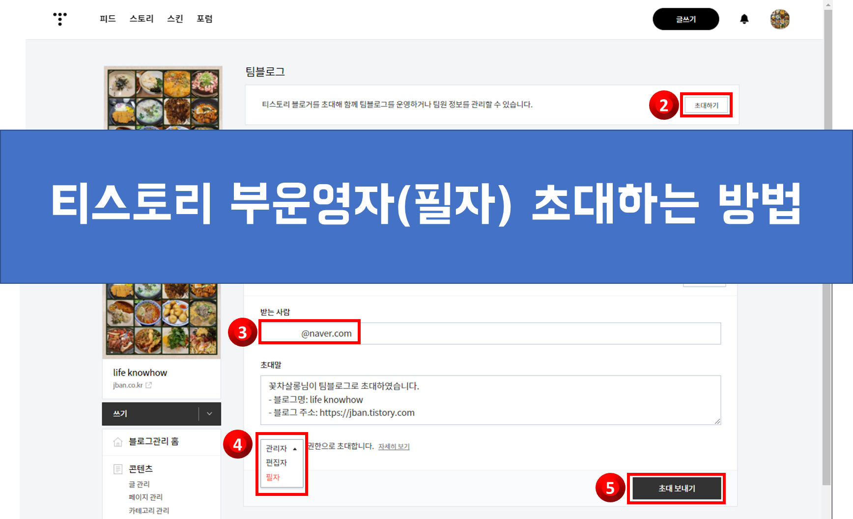 [ 티스토리 부운영자, 운영진 추가/초대 방법 ]
