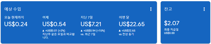 - 구글 애드센스 1개월 실적(22.10.28~22.11.27) : 24.71$(US)