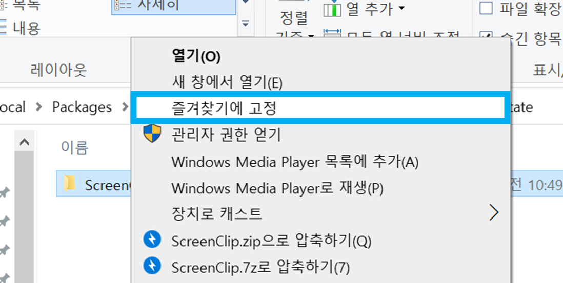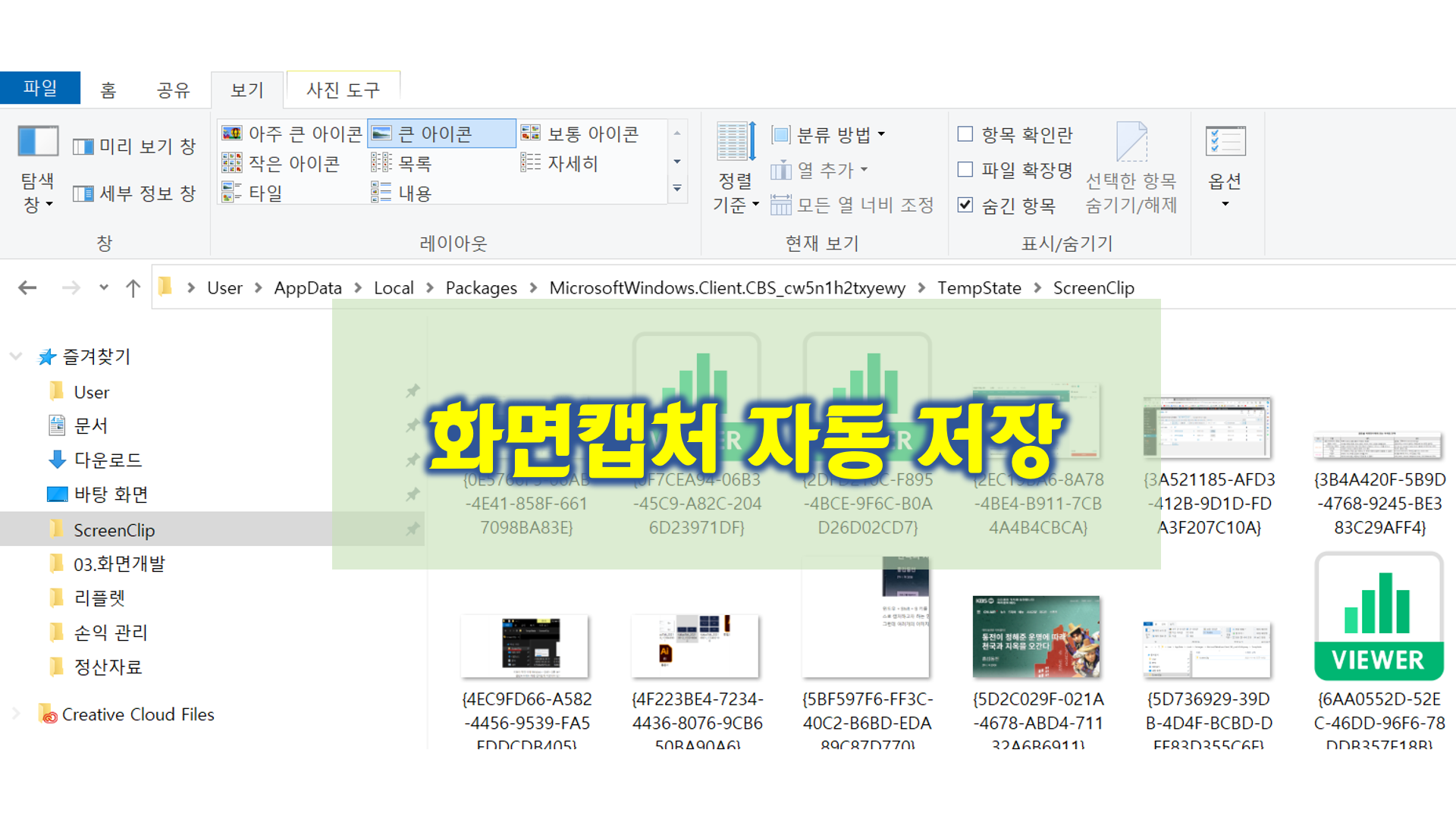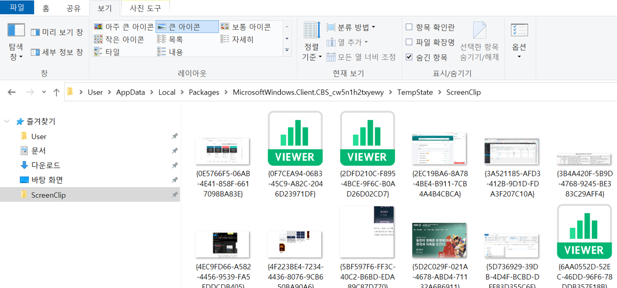 윈도우 캡처 이미지가 자동저장 되는 스크린 클립 "ScreenClip" 폴더를 탐색기 화면에 즐겨찾기에 고정시켜 두면 간편합니다.