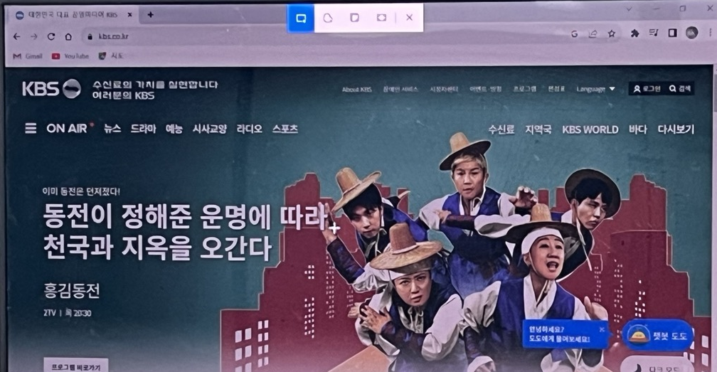 급하게 화면캡처를 해야 할 경우가 종종 있습니다. 다른 사람 PC에서 작업하거나 새롭게 PC를 구매해서 캡처 프로그램이 없는 경우 등입니다.