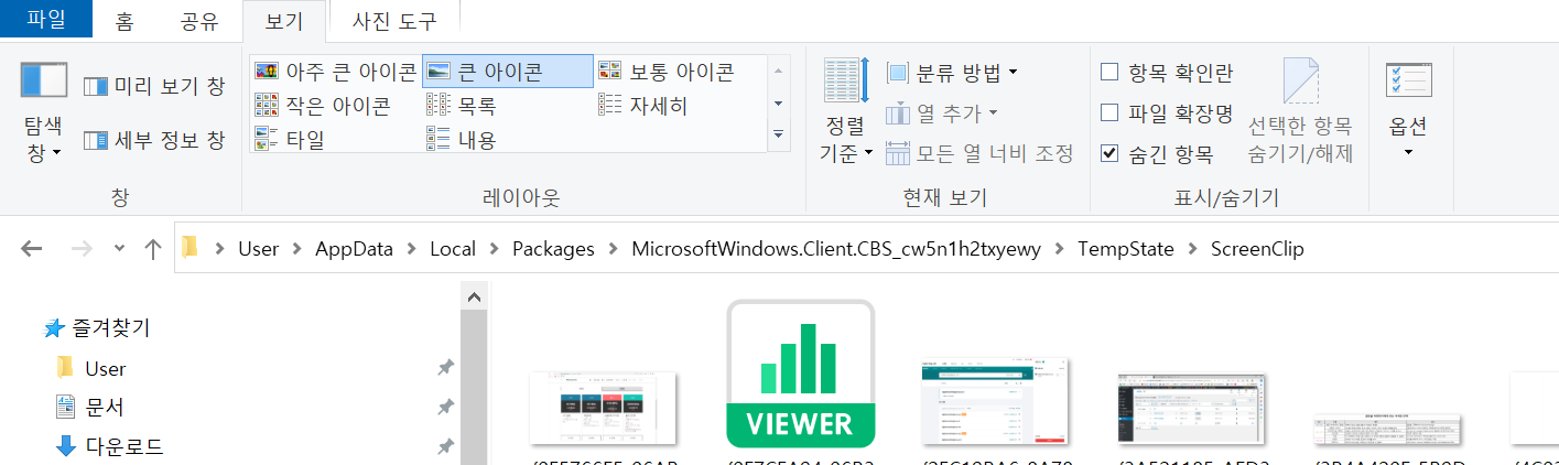 윈도우 캡처 이미지가 자동저장 되는 스크린 클립 "ScreenClip" 폴더를 탐색기 화면에 즐겨찾기에 고정시켜 두면 간편합니다.