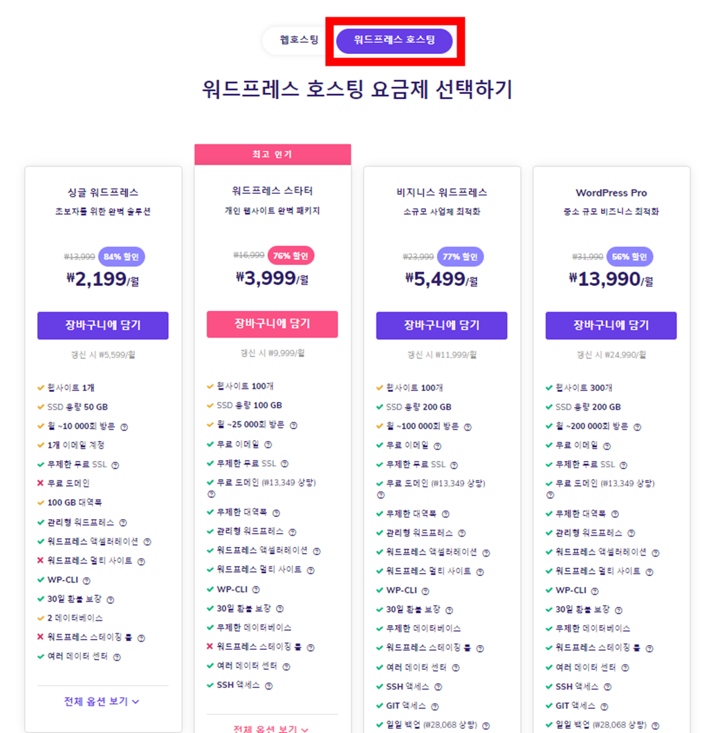 홈페이지 호스팅이 월 2,199원부터입니다. 믿기지가 않네요!