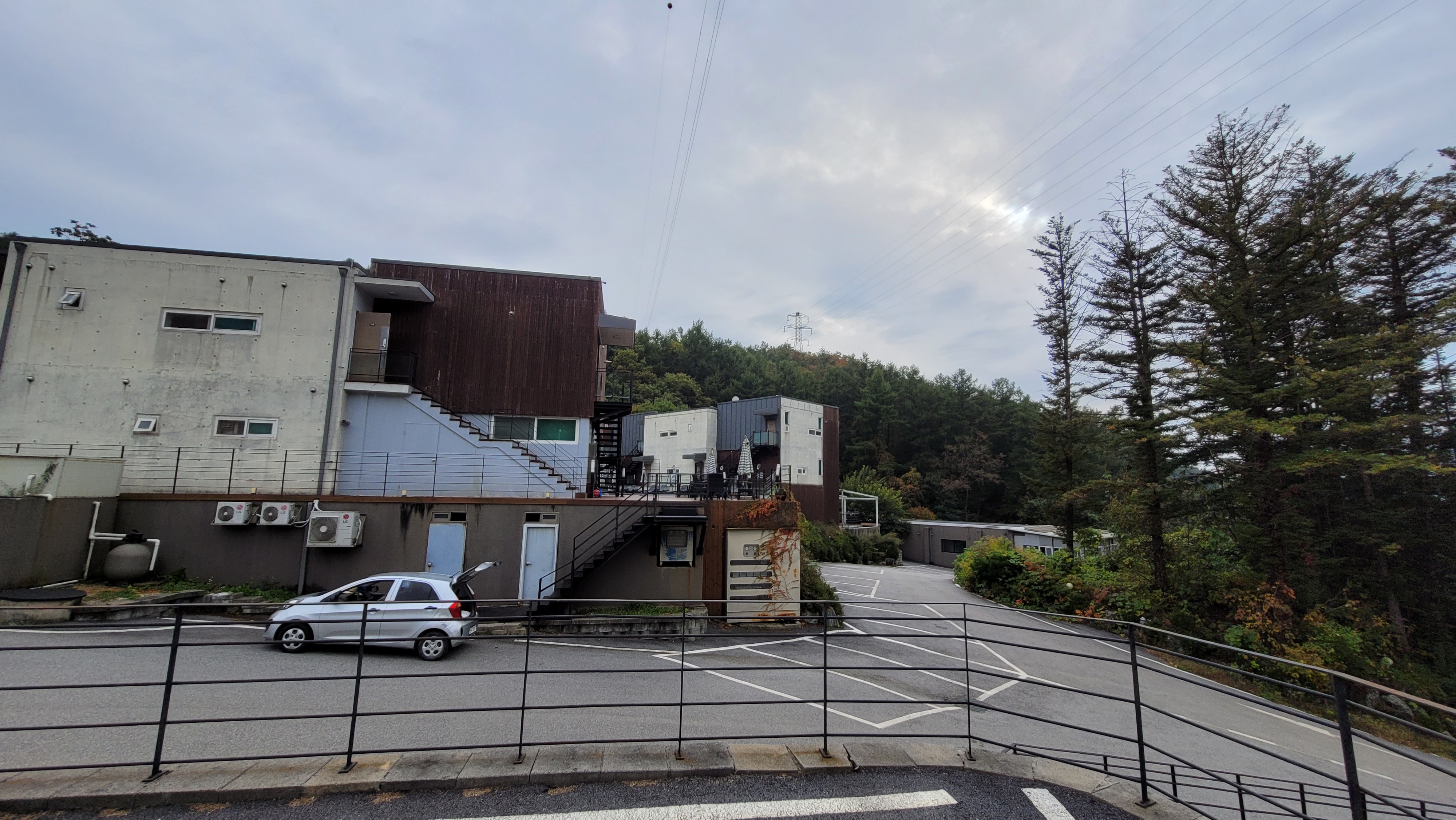 정면으로 보이는 곳이 가평 리버하임 인포메이션 센터와 저희가 숙소로 사용할 5동이 보입니다. 워낙 넓어서 주차 걱정은 안해도 되는데요. 다만 입구가 좁고 입구 주변 양옆이 바위로 둘러싸여 있기 때문에 들어오고 나갈 때 정말 주의해야 합니다. 펜션 측에서 이유가 있으시겠지만, 낮에도 걱정되는데 당일치기로 밤에 나가시는 분들 꽤 힘들었다고 합니다. 포르셰 타시는 우리 부사장님ㅠㅠ (겨우 겨우 안 긁고 나가셨다는)