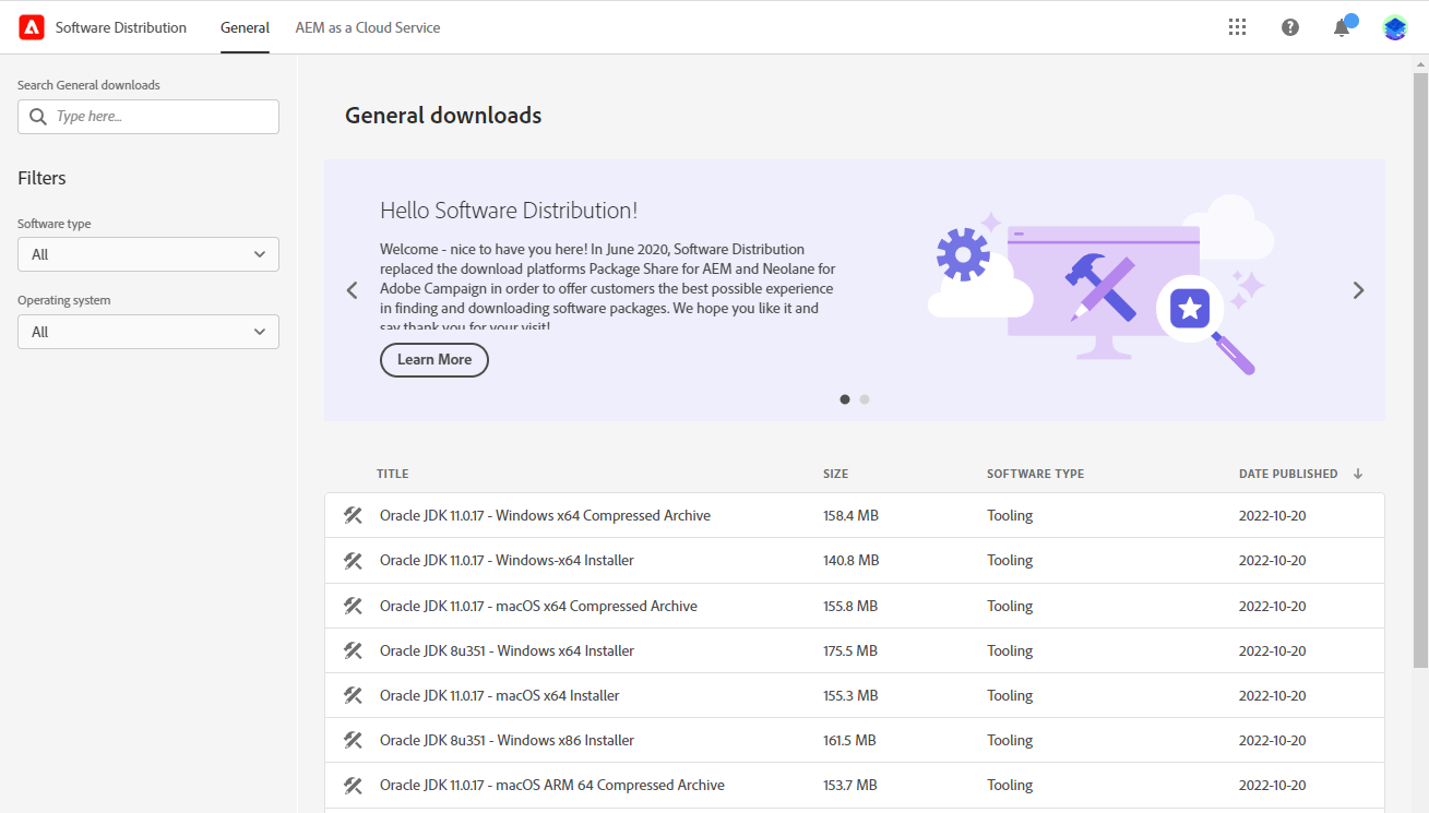 Adobe Software Distribution은 어도비 AEM 제품을 다운로드 받을 수 있는 사이트입니다.