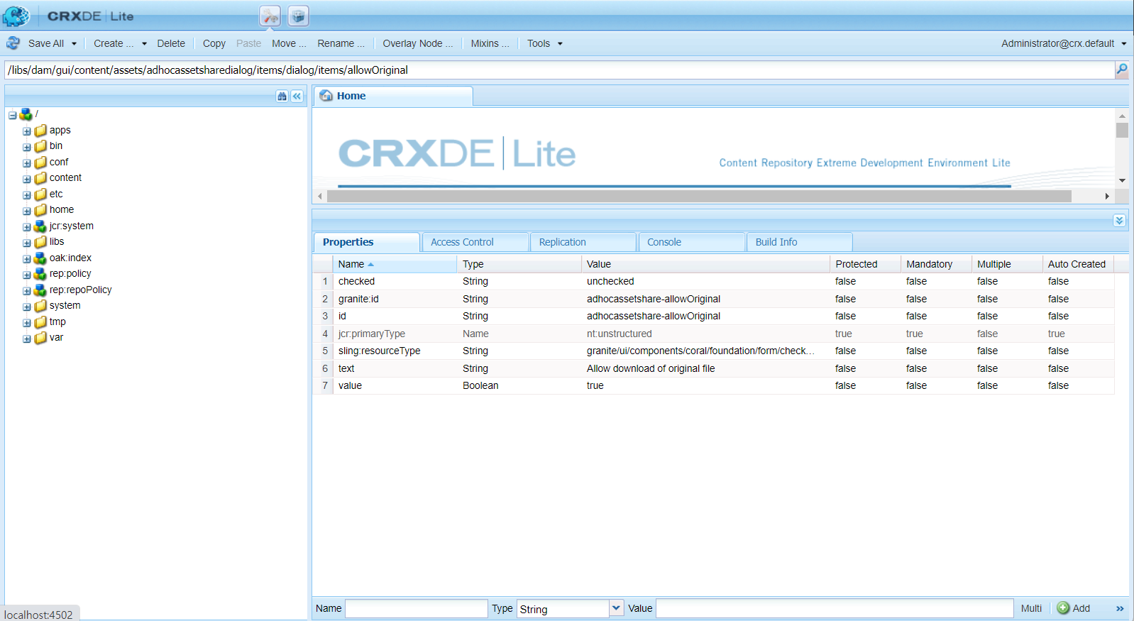 http://localhost:4502/crx/de