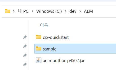 AEM 폴더에 sample 폴더 생성 후 'AEM 샘플'파일 붙여넣기