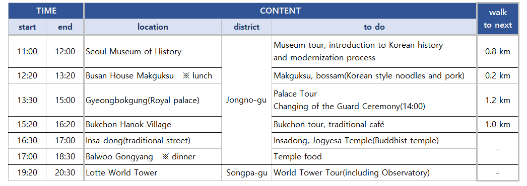 I hope this itinerary will be helpful to foreign tourists visiting Korea. In addition, I hope that tour guides will also refer to this itinerary.