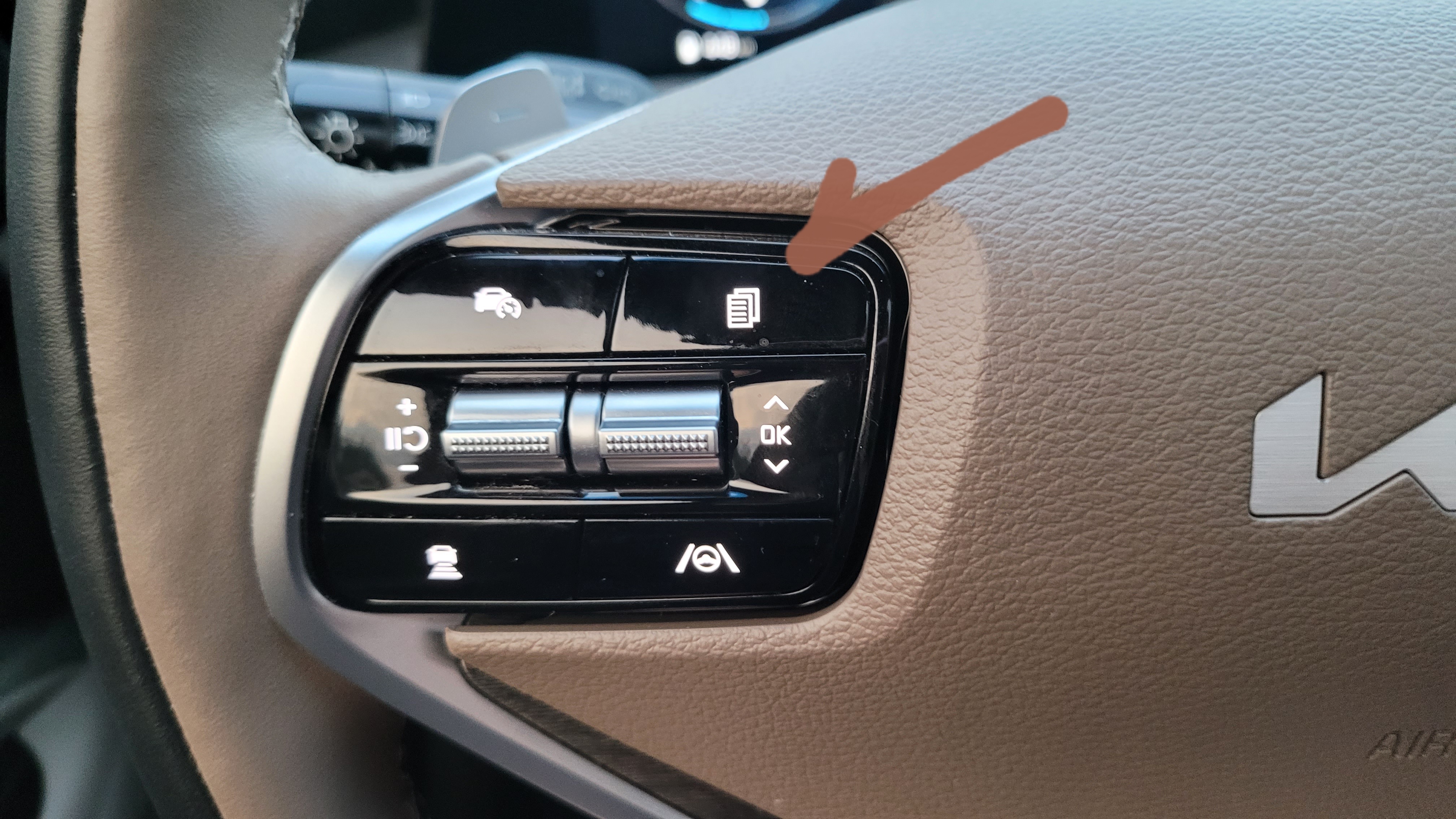 이것저것 생각해보다 운전대 옆에 있는 메뉴 버튼을 눌렀더니 원래 화면으로 돌아왔습니다^^ 아마 어제 타이어 공기압 경고등이 들어왔고, 정상 조치됐지만 경각심 유지 차원에서 그러나보다 했습니다.