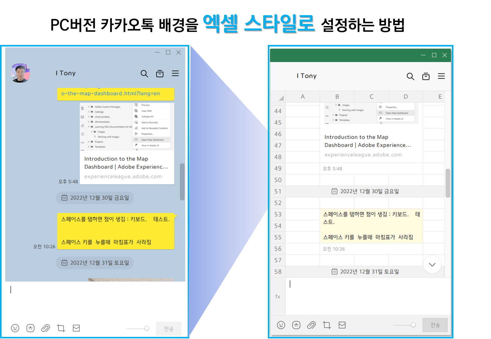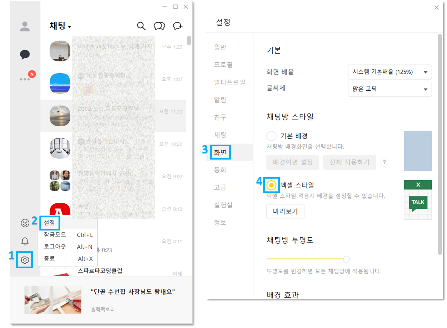 PC버전 카카오톡 배경 화면을 엑셀 스타일로 변경하는 방법