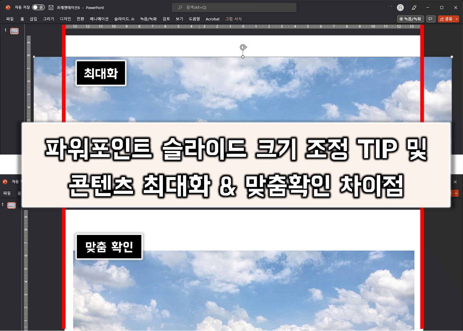 파워포인트 슬라이드 크기 조정 팁, 최대화와 맞춤 확인 차이점