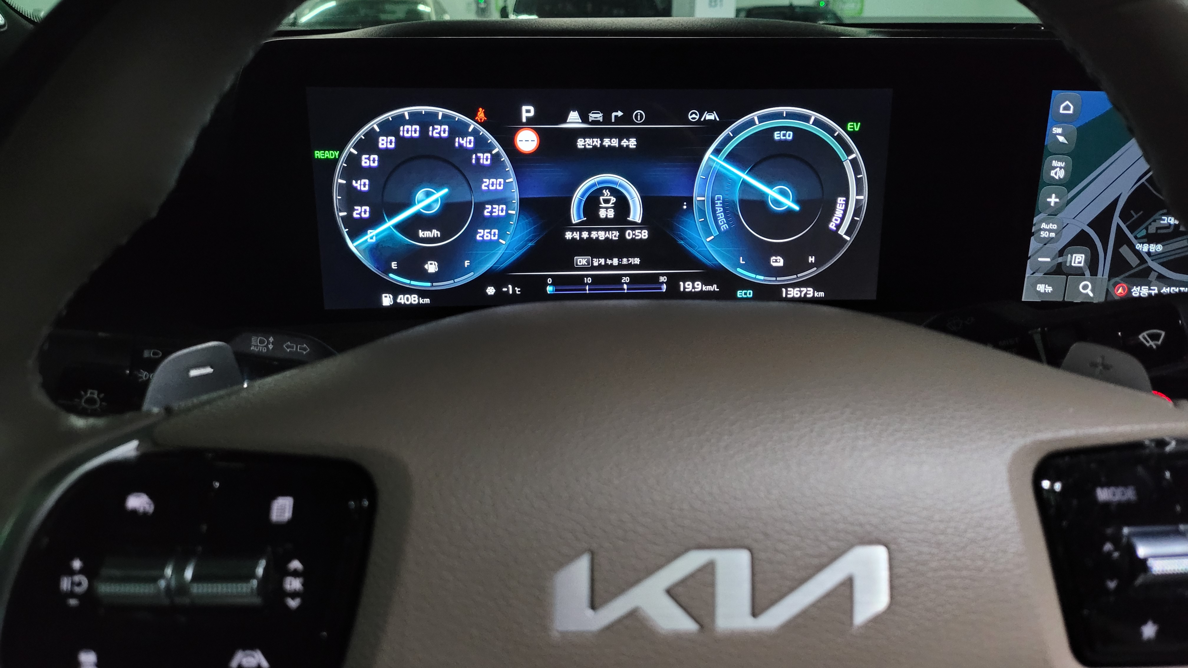 K8 하이브리드 계기판 4가지 모드 변경, 핸들 이용 세부 메뉴 변경 방법